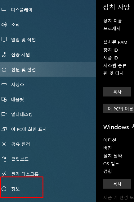1. 윈도우 설정 앱을 통해 컴퓨터 사양 확인하는 방법