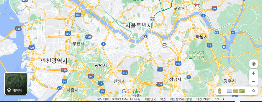 구글 지도 상단에는 지도 지역을 검색하는 검색 기능이 있습니다. 해당 검색바를 이용해 지도를 검색할 수 있습니다.
